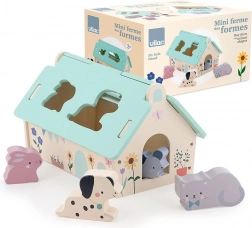 Tento krásně zpracovaný dřevěný domeček v jemných barvách je navržen podle návrhu Sarah Betz a obsahuje odnímatelnou střechu s tvarovanými otvory pro vkládání zvířátek. Je to raná hračka inspirovaná Montessori, která motivuje děti k rozvoji mnoha dovedností: