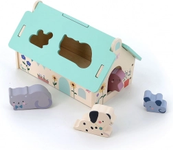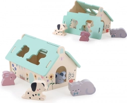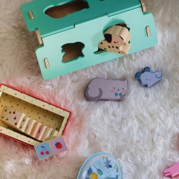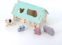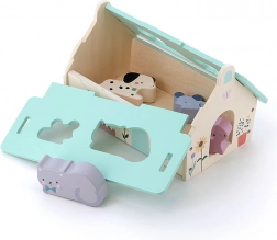 Objevte malebný dřevěný domeček od Sarah Betz s vloženými zvířátky jako pejsek, myška, kočička a králík. Tato hračka inspirovaná Montessori podporuje obratnost, koordinaci a představivost dítěte.