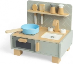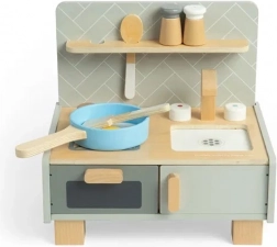 Kompaktní design v jemných neutrálních barvách se skvěle hodí do každého dětského pokoje či herny. Je vyrobena z FSC® certifikovaného dřeva a barvená netoxickými barvami, což zaručuje udržitelnou a bezpečnou zábavu pro děti od 3 let. Kromě zábavy tato kuchyňka podporuje rozvoj fantazie a představivosti, zatímco děti napodobují kuchyňské role.