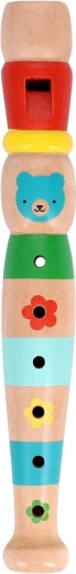 Dřevěná flétna Petit Collage je skvělým nástrojem pro rozvoj hudebnosti u dětí. Má hladký povrch, jasné barvy a dekoraci s medvídkem, což podporuje kognitivní rozvoj, koordinaci ruka-oko a sluchové učení.