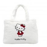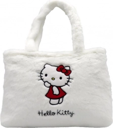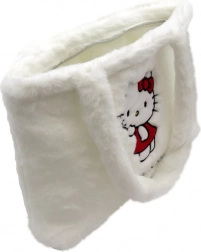 Velká plyšová taška Hello Kitty je vyrobena z kvalitních materiálů pro měkkost a odolnost, ideální pro přenos knih, lahví a hygienických potřeb.