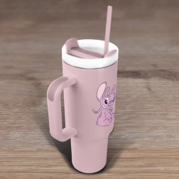 Cestovní hrnek Lilo a Stitch s růžovým brčkem