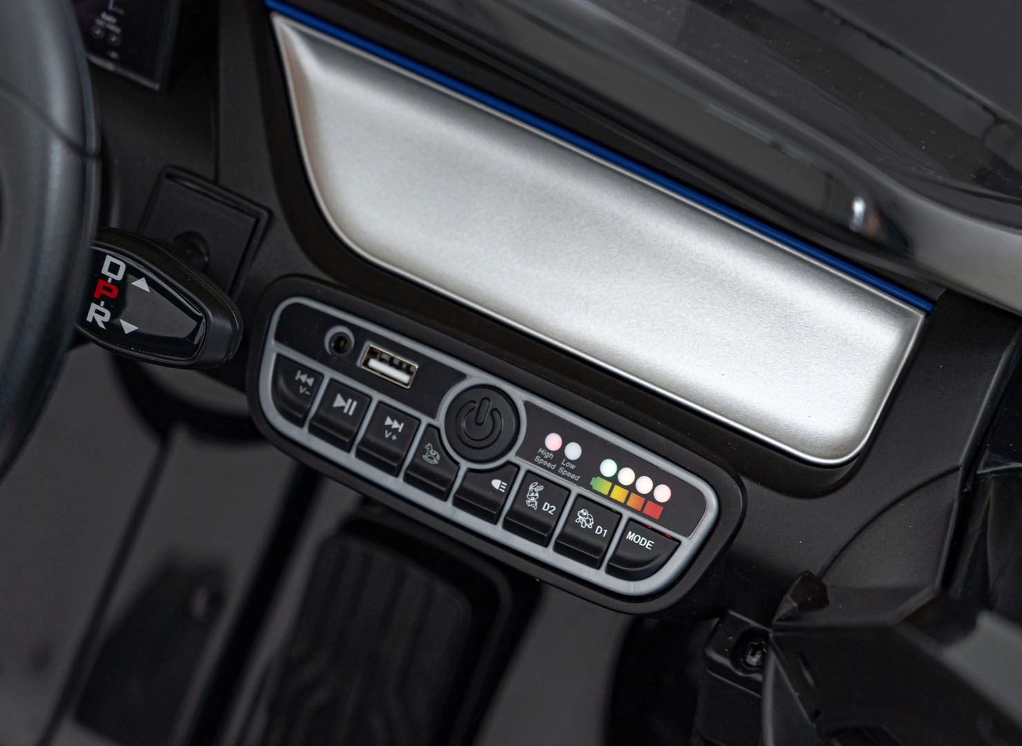 O zábavu se stará multimediální panel s Bluetooth, USB, AUX a MP3, nechybí houkačka a zvuky na volantu ani indikátor nabití. Díky dálkovému ovládání 2,4 GHz mohou mít rodiče vše pod kontrolou – včetně bezpečnostního STOP. Interiér s sedadlem z eko kůže a bezpečnostním pásem doplňují LED přední i zadní světla a autentické detaily EQA.