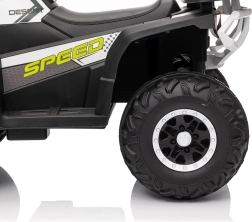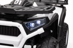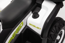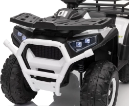 Quad ATV Robust Bílý je fantastické elektrické autíčko pro děti, které kombinuje bezpečnost, výkon a styl. Je vybaveno čtyřmi motory o výkonu 35W, které zajišťují hladký a silný pohyb v každém terénu. Děti si užijí pohodlné jízdy díky pěnovým kolům EVA a měkkému sedadlu z ekokůže.