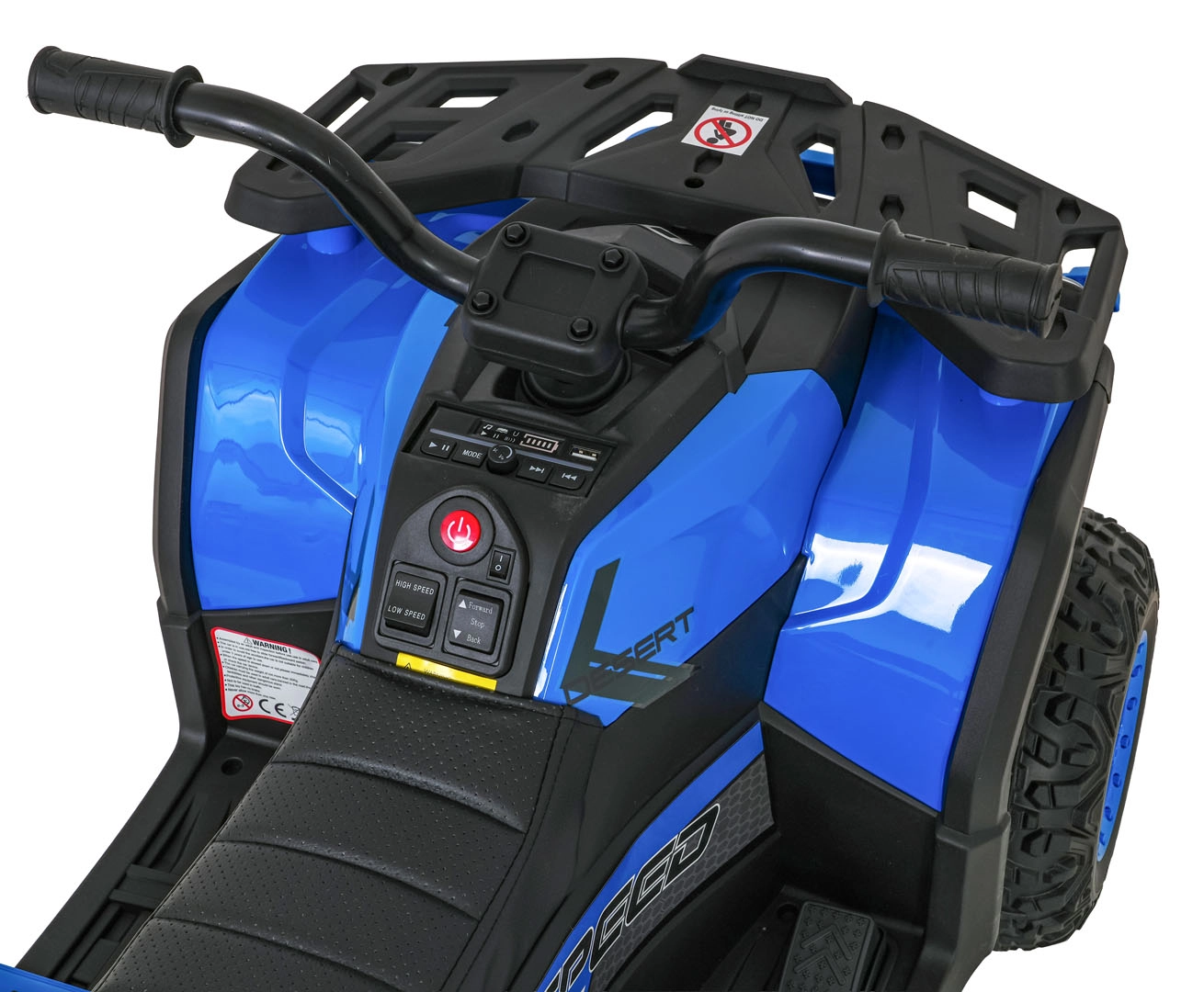 Malí jezdci ocení intuitivní ovládání přes řídítka, plynulý start, jízdu vpřed/vzad a 2 rychlosti. Multimediální panel s USB, MP3, FM rádiem a Bluetooth přehraje oblíbené písničky, přehledný indikátor stavu baterie upozorní na čas dobíjení. Sedlo z ekokůže s bezpečnostními pásy a protiskluzové stupačky zvyšují pohodlí i bezpečí.