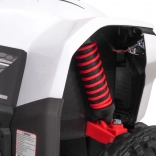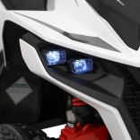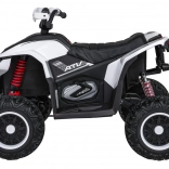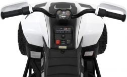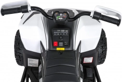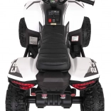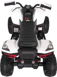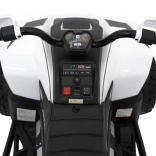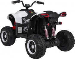 Robustní dětská čtyřkolka s pohonem 4 x 35 W a baterií 12 V 10 Ah pro silný záběr v terénu. Nabízí pěnová kola EVA pro tichou jízdu, dvě zadní nastavitelné tlumiče pro pohodlí, LED osvětlení vpředu i vzadu a bohatý audio panel s USB/MP3/FM/Bluetooth. Bezpečnost zvyšuje plynulý rozjezd, 2.4G dálkové ovládání se STOP tlačítkem a bezpečnostní pás na sedadle z eko kůže.