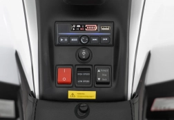 - Komfort v terénu: zadní nastavitelné tlumiče, velká kola 31 × 14 cm a světlá výška 21 cm.
