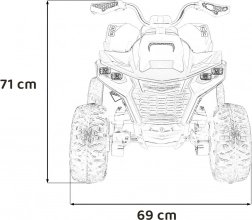 Tato elektrická čtyřkolka je navržena pro zábavu i bezpečí. Výkonný pohon 4×35 W v kombinaci s plynulým startem a dvoustupňovou rychlostí poskytuje jistotu a komfort při jízdě. Díky velkým EVA kolům (31 × 14 cm) a dvojitým zadním tlumičům s regulací zvládne i nerovný terén.