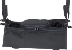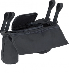 Jednoduché připevnění pomocí suchých zipů na bocích drží organizér stabilně na madle. Dvě prostorné přihrádky na nápoje s průměrem cca 7 cm a další kapsy na drobnosti poskytnou dost místa pro vše, co potřebujete mít po ruce.