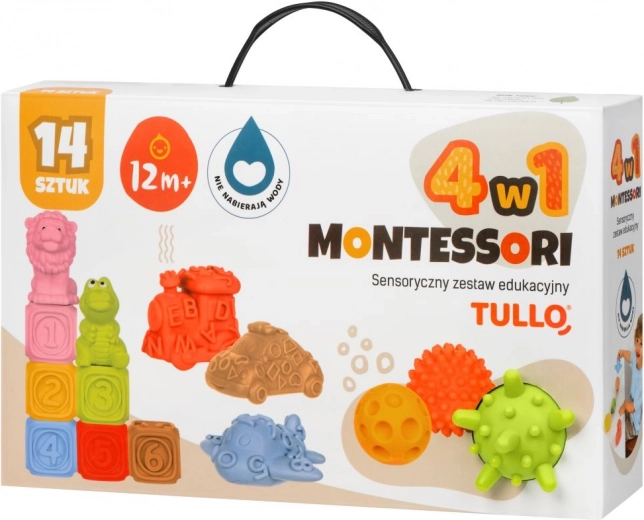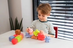Tato senzorická sada hraček zaujme každé dítě svými různorodými tvary a barevností. Hračky jsou bez otvorů, což je činí ideálním společníkem do koupele.