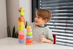 Tato montessori stavebnice a smyslová pyramida je perfektní volbou pro rodiče, kteří chtějí zapojit své děti do interaktivní a smyslové hry. Díky nemačkavému a bezpečnému materiálu jsou tyto hračky ideální nejen pro hraní, ale také pro koupání, protože nemají žádné otvory, což zamezuje hromadění vody uvnitř. Mezi další výhody patří: