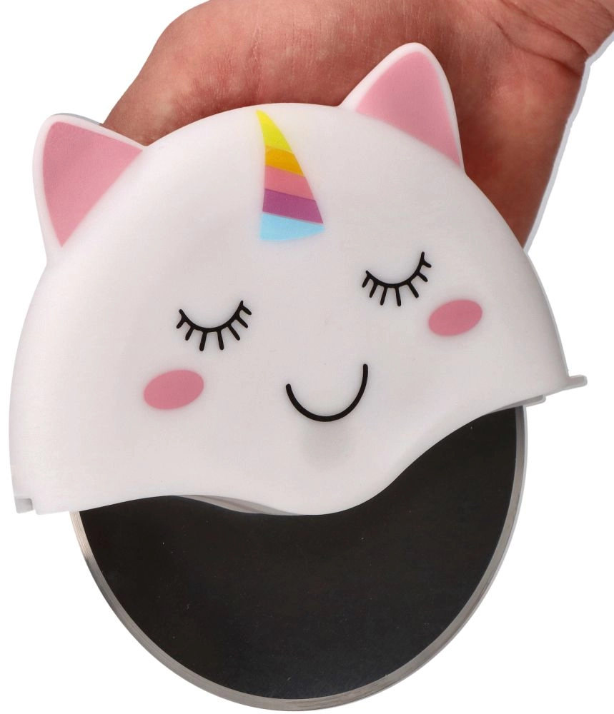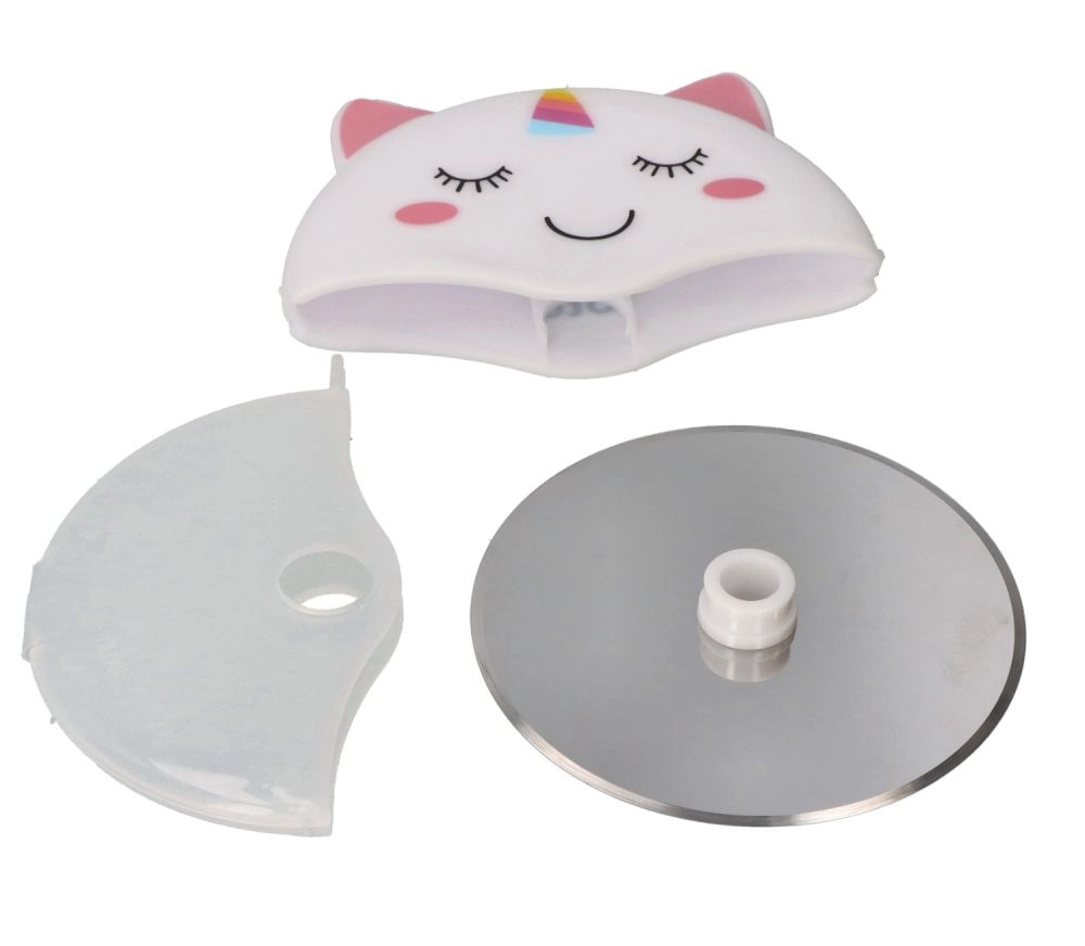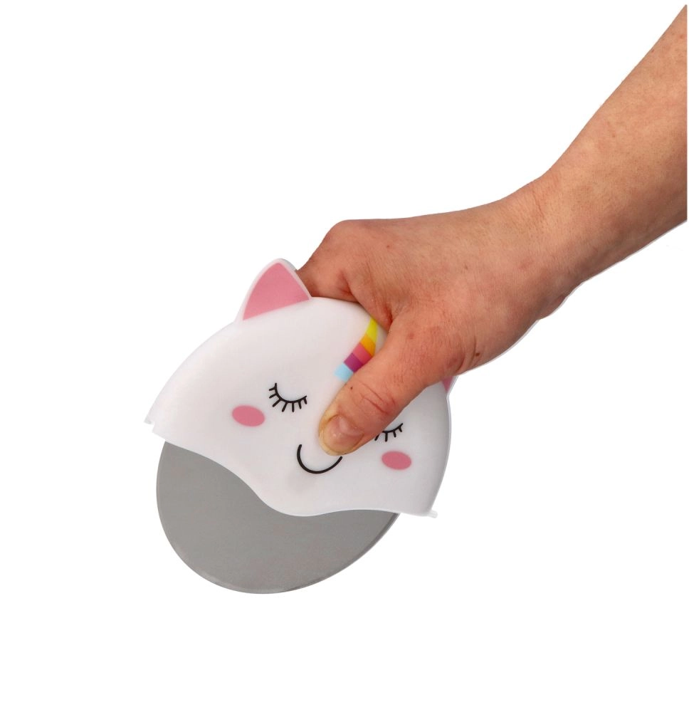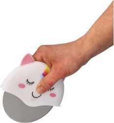 Tento originální kráječ na pizzu potěší milovníky zábavných doplňků do kuchyně. Nerezové kolečko o velkém průměru hladce projede křupavou kůrkou i sýrem, zatímco pevná rukojeť z odolného plastu zajistí jistý úchop. Roztomilý jednorožec s duhovým rohem dodá vašemu stolování kouzelný nádech.