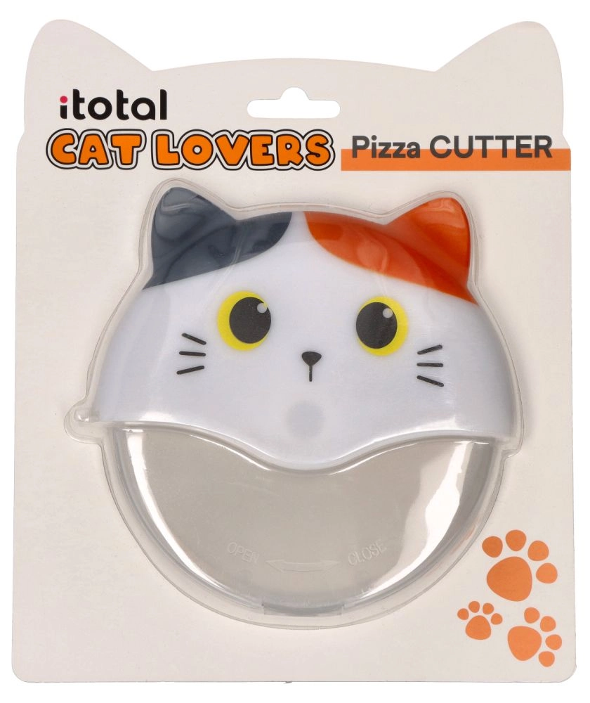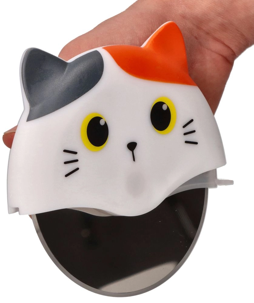 Tento designový kráječ na pizzu s motivem kočky potěší každého milovníka pizzy i roztomilých kuchyňských doplňků. Nerezový rotační kotouč s tloušťkou ostrí 0,8 mm zaručuje čistý řez bez trhání, zatímco ergonomická plastová rukojeť padne jistě do ruky.