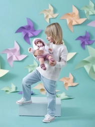 Jednoduše vyjměte pojistku a panenka ihned začne fungovat! Po vytažení dudlíku z úst začne panenka říkat jednoduchá slova a vydávat realistické zvuky plače. Dítě se naučí, jak utišit pláč pomocí dužilůku. Panenka je ručně vyrobena ve Španělsku a dodávána v dárkové krabici, ideální pro každou příležitost.
