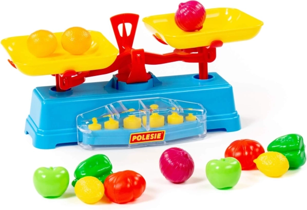Dětská váha s doplňky je skvělá pomůcka pro hru na obchod i kuchyň. Děti si při ní nenásilně osvojují základy počítání, porovnávání i smysl pro rovnováhu. Součástí je sada barevných plastových potravin, které vybízejí k tvořivé hře a rozšiřují slovní zásobu.