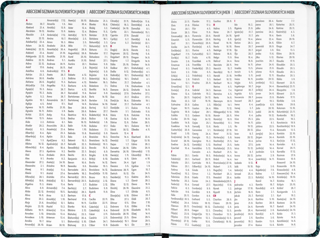 - Seznam českých a slovenských jmen