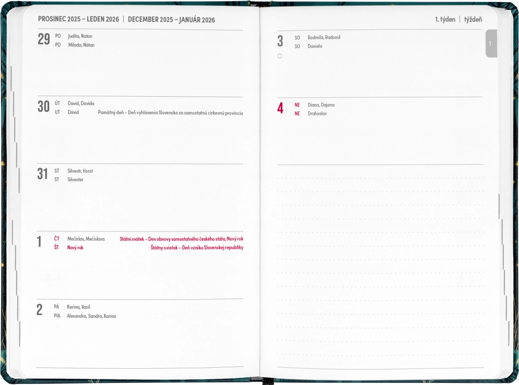 - Česko-slovenské týdenní řádkové kalendárium se jmény a svátky