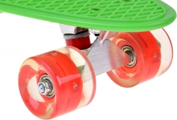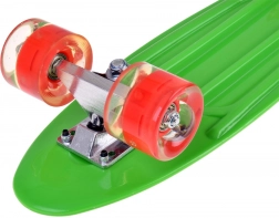 Kolečka skateboardu jsou vyrobena z odolného materiálu pokrytého speciální gumou, což poskytuje vynikající přilnavost a tlumení vibrací. Další atrakcí jsou integrované LED diody, které svítí během jízdy a dodávají skateboardu výjimečný vzhled, navíc zvyšují viditelnost uživatele - bez nutnosti baterií! Diodami jsou napájeny magnetickou energií generovanou při otáčení kol.