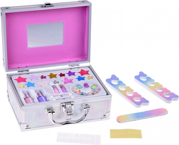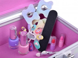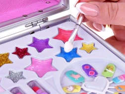 Kufřík obsahuje vše potřebné pro zábavné líčení: laku na nehty, rtěnky, oční stíny, aplikátory, nalepovací nehty a nálepky. Pro snadnější líčení je uvnitř také zrcátko.