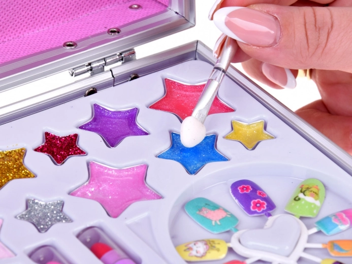 Obsahuje laky na nehty, rtěnky, stíny, aplikátory a více – vše potřebné pro krásné líčení.