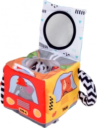 • Textilní, barevná kostka s bezpečným zrcátkem a černobílými měkkými úchyty