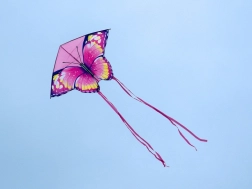 Motýlový design s živými barvami a realistickými křídly zajišťuje, že tento drak zaujme každého pozorovatele.