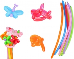 V balení naleznete 100 balonů v různých, živých barvách, dodávané ve výrobní krabičce. Před nafouknutím měří jejich délka přibližně 30 cm, což umožňuje vytvářet vlastní dekorativní kompozice jako například květiny, pejsky, medvídky nebo cokoli vám dovolí vaše představivost a manuální dovednosti.