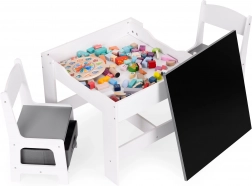 Sada dětského nábytku ECOTOYS je ideální pro hru i odpočinek. Obsahuje 2 židle a stůl s odolnou konstrukcí z MDF. Součástí stolu je oboustranná, odnímatelná deska s křídovou tabulí, která slouží jak ke hře, tak i ke vzdělávání dětí, pomáhá rozvíjet jemnou motoriku a kreativitu.