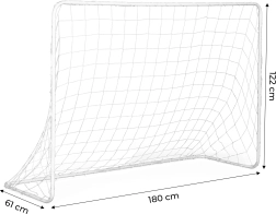 Po odstranění plachty představuje branka standardní rozměry pro fotbalové zápasy. Stabilní ocelový rám je ukotven k zemi kolíky, což zaručuje stabilitu i při prudkých střelách. Cítíte se jako Szczęsny při každém útoku!