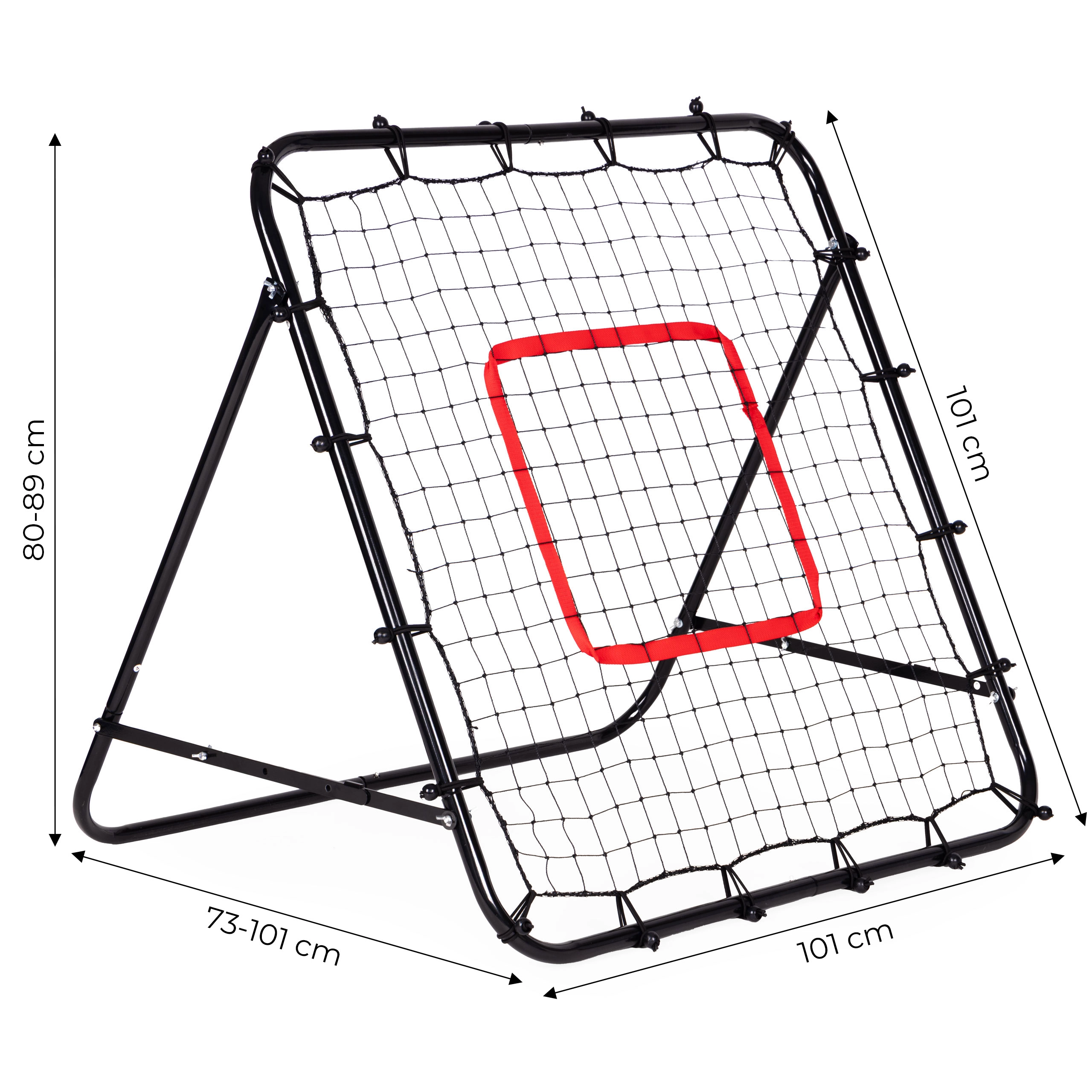 Konstrukce: Stabilní kovový rám z práškově lakované oceli nabízí dlouhou životnost a odolnost vůči povětrnostním vlivům. Odolná síť napnutá pružnými bungee šňůrami se postará o dynamické a realistické odrazy míče.
