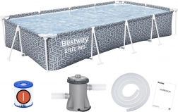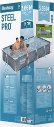 Obdélníkový bazén BESTWAY Steel Pro nabízí skvělý poměr velikosti a stability. Trojvrstvá stěna Tritech (výztuž z polyesterové síťoviny mezi dvěma vrstvami PVC) je mimořádně odolná vůči protržení a roztažení, zatímco ocelový rám se systémem FrameLink zajišťuje pevné a bezpečné spojení bez koroze v místě kov–kov. Integrovaný vypouštěcí ventil usnadňuje rychlé vypuštění vody pomocí zahradní hadice.