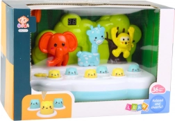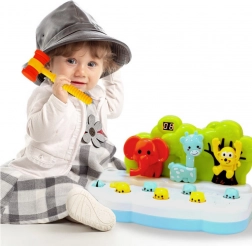Tato barevná hra zaujme malé hráče tím, že kombinuje radostnou zábavu s rozvojem důležitých dovedností, jako jsou reflexy, pohybová koordinace a koncentrace. Úkolem je trefit přiloženým kladívkem malé figurky zvířat, které se náhodně objevují z otvorů – nejenže to dětem přináší velké pobavení, ale také stimuluje jejich pohotovost a zrychluje reakce.