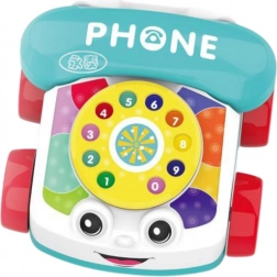 Telefon je vybaven rotujícím číselníkem, barevnými prvky a usměvavou tváří, což láká dítě k interakci a objevování světa zvuků, tvarů a pohybu. Pohyblivé součásti, jako je číselník nebo kolečka, stimulují zvědavost dítěte a povzbuzují k aktivnímu prozkoumávání.