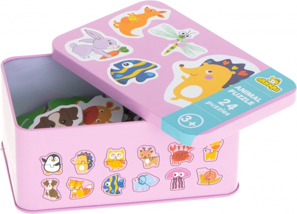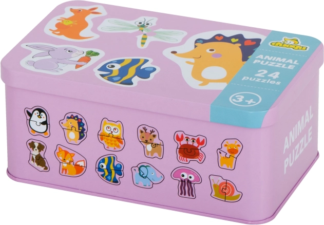 Puzzle jsou uloženy v kovové krabičce pro snadné skladování a přenos. Ideální pro cestování.