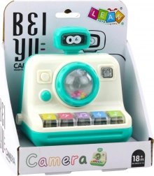 Interaktivní fotoaparát Piano je barevnou, multifunkční hudební hračkou pro malé děti, která podporuje rozvoj pomocí hry. Spojuje světelné a zvukové efekty s manuálními funkcemi, stimulující smysly a učící barvy a zvuky.