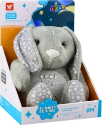 Plyšový králík je navržen pro nejmenší děti již od narození. Je vyroben z jemného, na dotek příjemného plyše ve šetřícím šedém odstínu, což působí uklidňujícím dojmem. Interaktivní panel v bříšku králíka nabízí různé funkce, které podporují uklidňování a uspávání dítěte. Hračka je ideální nejen pro miminka, ale i pro starší děti, které se bojí samostatně spát.