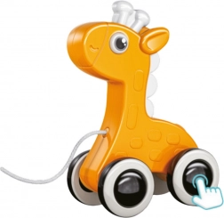 Žirafa na tahání je ideální pomůcka pro učení chůze, která motivuje dítě k pohybu a samostatné hře. Díky praktickému provázku ji dítě může vzít všude s sebou a učit se ovládat směr a rychlost pohybu. Hračka má pískátka ve všech kolech, což přináší dodatečné zvukové podněty. Zvuk je jemný a bezpečný pro uši dítěte a nevyžaduje žádné baterie, což činí hračku jednoduchou a pohodlnou k dennímu použití.