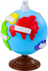 Interaktivní glóbus, barevná otočná zeměkoule, je navržen tak, aby podporoval dětský rozvoj prostřednictvím dotyku, pohybu a rozpoznávání tvarů. Děti se učí skrze hraní, kdy se snaží přiřadit barevné kontinenty na správné místo, což napomáhá logickému myšlení a prostorovému vnímání.