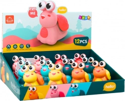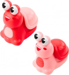 Zábavný šnek má velké oči a veselý výraz obličeje, které v kombinaci s pastelovými barvami rychle dělají z šneka oblíbeného společníka při hraní. Jeho tvar je navržen pro malé ruce – je lehký, bezpečný a snadno uchopitelný, což umožňuje dětem jej samostatně uvést do pohybu.