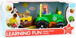 Hračka je vybavena třemi různými melodiemi a během jízdy blikají přední světla traktoru, což dále přitahuje pozornost dítěte. Traktor se pohybuje hladce a bez problémů táhne přívěs, na kterém jsou speciálně označená místa pro figurky zvířat. Každé zvířátko pasuje pouze na jedno místo, a jeho správné umístění aktivuje odpovídající zvuk. Jedná se o skvělý způsob, jak rozvíjet logické myšlení, asociace a učení zvuků zvířat.