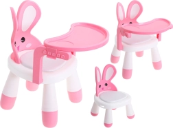 Tato multifunkční židlička s motivem králíčka promění každé jídlo i zábavu v příjemný rituál. Odnímatelný růžový stolek poslouží ke krmení, kreslení i stavění kostek, zatímco ergonomické opěradlo s ušima podpoří správné a pohodlné sezení.