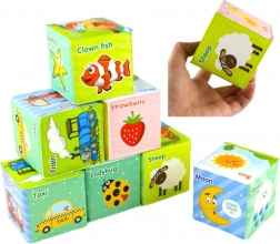 Kostky obsahují různé obrázky – písmenka, číslice nebo slova v angličtině, což podporuje jazykový a kognitivní vývoj dítěte. Každá kostka je navržena tak, aby podněcovala smyslovou stimulaci a rozvoj jemné motoriky, což umožňuje dětem kostky stavět, mačkat, házet a sledovat různé vzory a barvy.