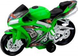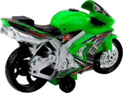 Naše zelená závodní motorka je vyrobena z kvalitního, odolného plastu a je vybavena širokými koly a stabilní oporou, což zajišťuje bezpečnost a pohodlí při hře na různých površích. Efekty jako realistické zvuky motoru a záblesky světel lze jednoduše aktivovat stisknutím tlačítka, což dodává hře jedinečnou autentičnost.