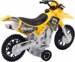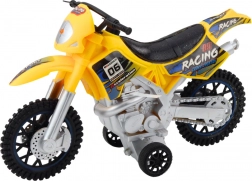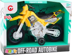Tato motorka je vyrobena z odolného plastu, který zvládá intenzivní hraní. Žlutá barva a závodní nálepky dodávají atraktivní vzhled, zatímco velká terénní kola poskytují stabilitu na nerovných površích.