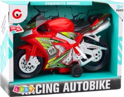 Červená motorka je vyrobena z vysoce kvalitního plastu odolného proti poškození a je vybavena pevnými širokými koly a stabilní oporou, která zajišťuje bezpečnou a pohodlnou hru na různých površích. Efekty světel a zvuků, které se spouštějí stisknutím tlačítka, nabízejí realistické motorové zvuky a světelné efekty, což dělá hru ještě více poutavou.