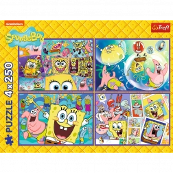 Objevte zábavu s puzzlem 4x250, které nabízí čtyři skládačky po 250 dílcích v jednom balení. Připojte se k dobrodružstvím postav z oblíbeného seriálu SpongeBob Kanciastoporty.