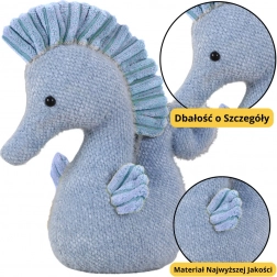 Modrý mořský koník zaujme svým vzhledem zpracovaným do nejmenších detailů. Má bezpečné oči, pečlivě vytvarovaný čumáček a efektivně strukturovaný hřebínek, díky kterému vypadá realisticky a esteticky.