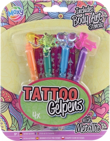 Vytvořte si během chvilky originální dočasná tetování s touto sadou metalických gelových per. Balení nabízí 4 různé barvy a praktické šablony pro snadné a přesné zdobení pokožky. Ideální pro párty, festivaly i kreativní tvoření s dětmi. Snadné použití a třpytivý metalický efekt pro výrazný vzhled.