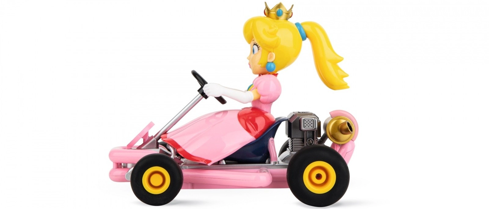 Vychutnejte si růžové závodní dobrodružství se zdaleka řízeným vozem Mario Kart od Carrera RC v měřítku 1:18. Princezna Peach startuje na svém novém motokáru připravená na každou závodní trať, s maximální rychlostí 9 km/h a délkou 21 cm.