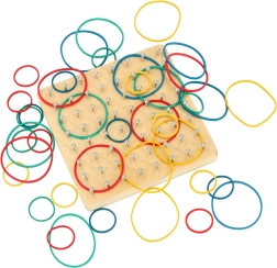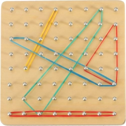 Objevte zábavný způsob, jak děti seznámit se základy matematiky – tvary, úhly a symetrie. Na dřevěné desce s hustou mřížkou kolíků děti napínají gumičky v různých délkách a barvách a vytvářejí obrazce podle karet nebo vlastní fantazie. Hra posiluje koordinaci oko–ruka, soustředění a logické uvažování.
